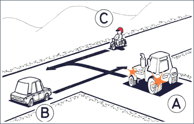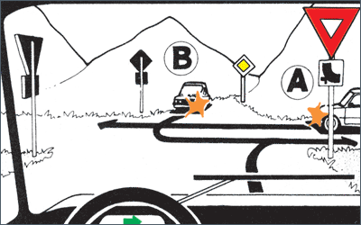 Mikor haladhat át a kormánykerékkel ábrázolt gépkocsijával az ábrán látható útkereszteződésben?