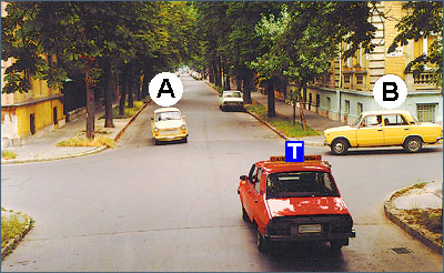 Hányadikként haladhat át az útkereszteződésben a tanulókocsi?