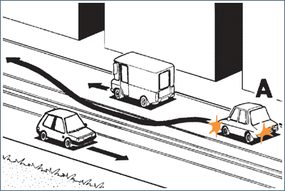 Szabályosan közlekedik-e az A jelű gépkocsi?