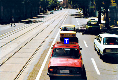 Ön a T jelzésű gépkocsit vezeti. Előzhet-e a jobb oldali villamos-pályán?