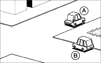 A B jelű személygépkocsi az útkereszteződéstől 6 m-re állt meg. Szabályos-e?