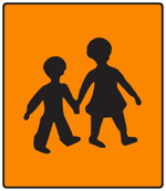 Fokozott figyelemmel és körültekintéssel való haladásra, mert a jármű közelében kíséret nélküli gyermekek közlekedhetnek.