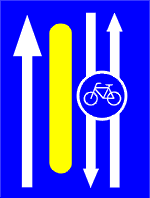 Azt, hogy a kerékpárosoknak az utat jobbra vagy balra bekanyarodva el kell hagyniuk.