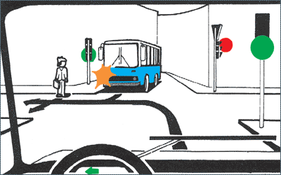 Melyik járműé az elsőbbség az ábrázolt forgalmi helyzetben?