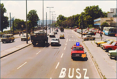Ha az út- és forgalmi viszonyok lehetővé teszik, szorosan az úttest jobb szélén.