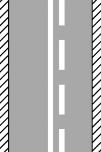 Az úttest jobb oldalán, a forgalmi sáv közepén.
