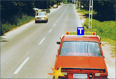 Folytathatja-e egyenesen az útját a tanulókocsi az ábrázolt forgalmi helyzetben?