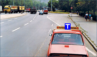 Ön a T jelzésű gépkocsit vezeti. Ráhajthat-e az úttest szélén lévő fehér vonalazással megjelölt területre?
