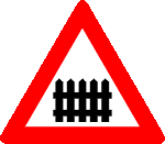 Az úton olyan vasúti átjáró van, amelynél teljes vagy félsorompó felszerelve nincs.