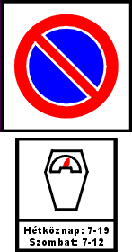 Várakozási tilalmat a táblával jelzett övezetben.