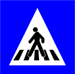 Hogyan kell megközelíteni ezt az útburkolati jelet, ha rajta gyalogos tartózkodik?