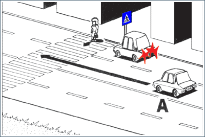 Elhaladhat-e a gyalogos előtt az A jelű személygépkocsi?