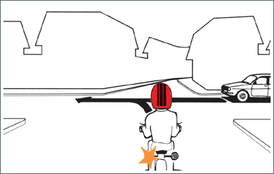 Zsákutcát, amelyben kerékpárosok részére a tovább-haladás lehetősége biztosított.