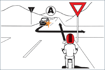 Ön a segédmotoros kerékpárt vezeti. Van-e elsőbbségadási kötelezettsége az A jelű járművel szemben?