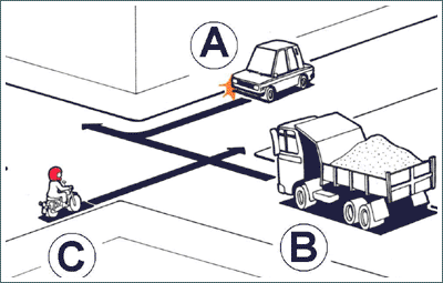 Melyik jármű haladhat tovább elsőként?