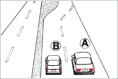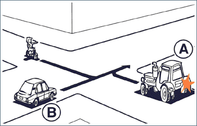 Melyik járműé az elsőbbség az ábrázolt forgalmi helyzetben?