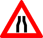Az úttest mindkét irányból belátható szakaszon egy forgalmi sávra szűkül.